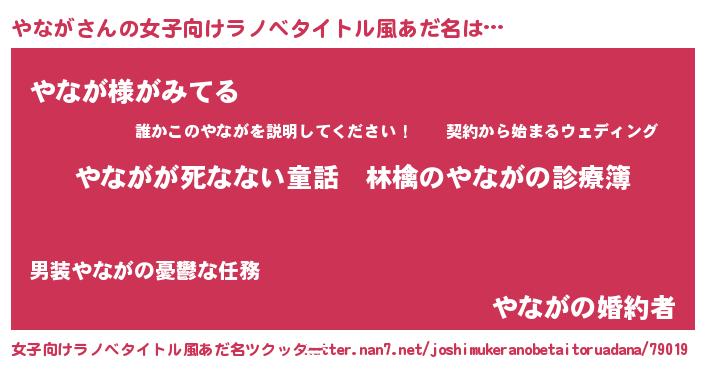 | 意味不明あだ名 | 『住所不定無職やなが(13歳)』『自称やなが』 |