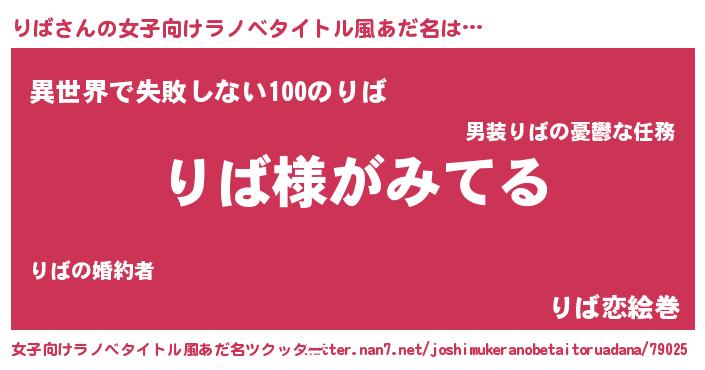 | ヘコむあだ名 | 『りばっちょ』『りば(笑)』 |