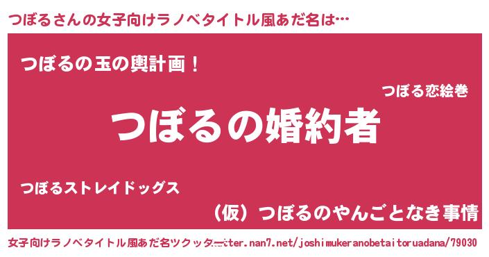 | 男性向けラノベタイトル風あだ名 | 『うちの娘の為ならば、俺はもしかしたらつぼるも倒せるかもしれない。』 |