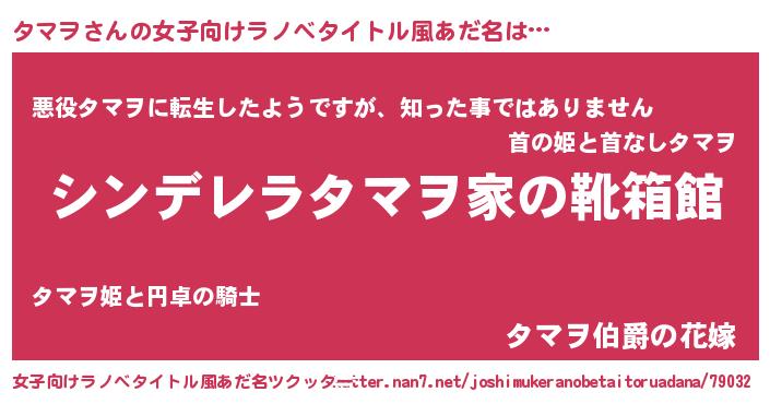 | 男性向けラノベタイトル風あだ名 | 『冴えないタマヲの育てかた』 |