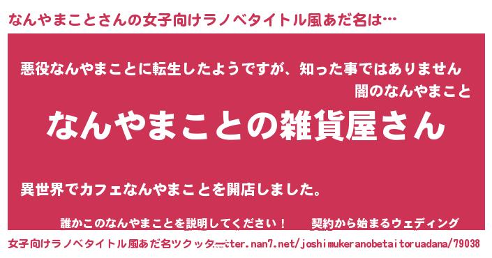 | 男性向けラノベタイトル風あだ名 | 『やはりなんやまことの青春ラブコメはまちがっている 』 |