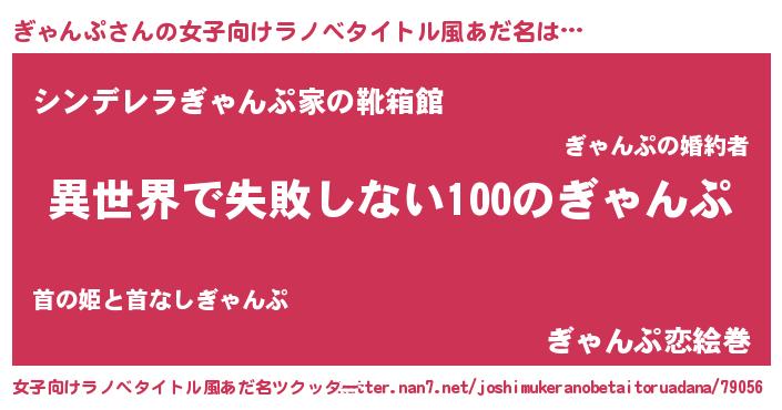 | 胡散臭い通販商品みたいなあだ名 | 『絶対に幸福をもたらす招き猫…その名も「ぎゃんぷ」』 |
