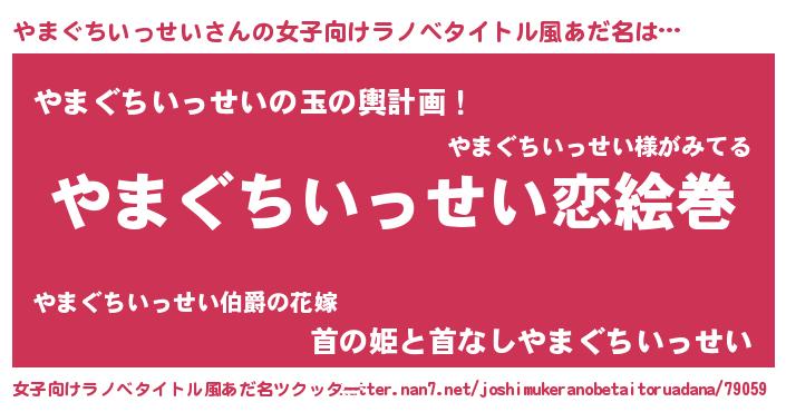 | 男性向けラノベタイトル風あだ名 | 『ノーゲーム・ノーヤマグチイッセイ』 |