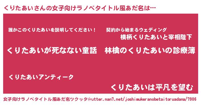 | 胡散臭い通販商品みたいなあだ名 | 『ハリウッド女優が絶賛した100年もののヴィンテージワイン…その名も「くりたあい」』 |