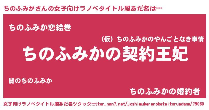 | 男性向けラノベタイトル風あだ名 | 『ちのふみかという概念が存在しない退屈な世界 』 |