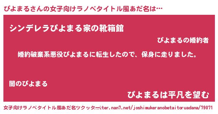 | 男性向けラノベタイトル風あだ名 | 『転生したらぴよまるだった件』 |