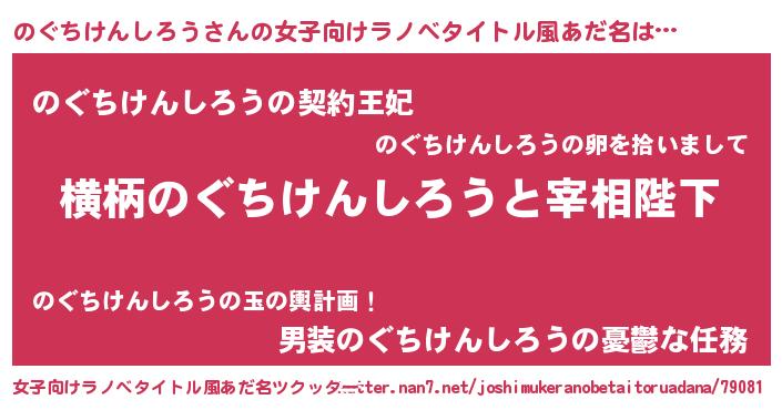 | 男性向けラノベタイトル風あだ名 | 『のぐちけんしろうに滅ぼされるだけの簡単なお仕事です』 |