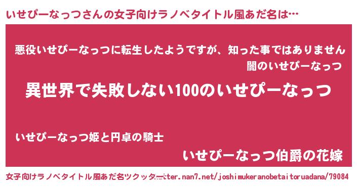 | 意味不明あだ名 | 『永久保存いせぴーなっつ』 |