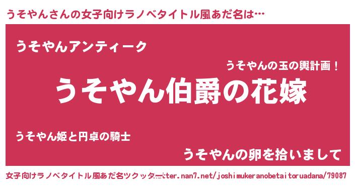 | 可愛いあだ名 | 『うそちー』『うそうちぇる』 |