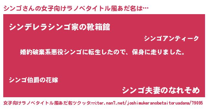 | 意味不明あだ名 | 『しいたけ科シンゴ属』『自称シンゴ』 |
