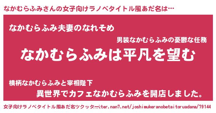 | 意味不明あだ名 | 『とにかく怪しいなかむらふみ』 |