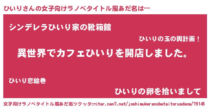 | 男性向けラノベタイトル風あだ名 | 『誰もが恐れるあのひいりが、ぼくの専属メイドになるようです。』 |