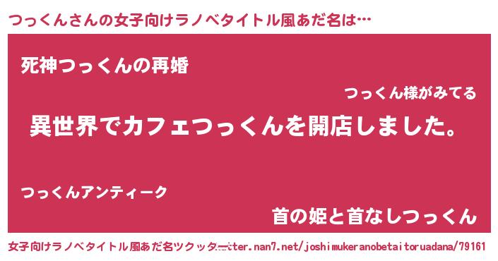 男性向けラノベタイトル風あだ名 | 『誰もが恐れるあのつっくんが、ぼくの専属メイドになるようです。』 |
