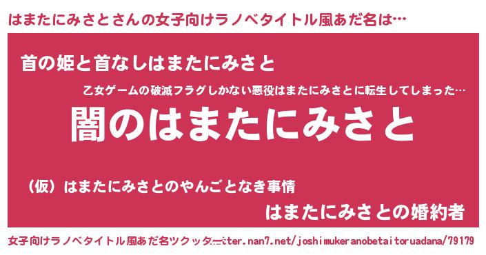 | 男性向けラノベタイトル風あだ名 | 『Re:はまたにみさとから始める異世界生活』 |