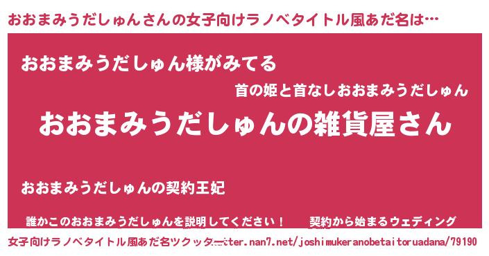 | 男性向けラノベタイトル風あだ名 | 『やはりおおまみうだしゅんの青春ラブコメはまちがっている 』 |