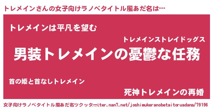 | 男性向けラノベタイトル風あだ名 | 『うちのトレメインが世界を掌握している!』 |