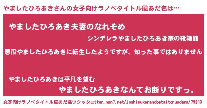 | 男性向けラノベタイトル風あだ名 | 『この素晴らしい世界にやましたひろあきを!』 |