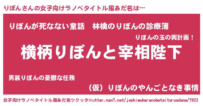 | 男性向けラノベタイトル風あだ名 | 『りぼんに滅ぼされるだけの簡単なお仕事です』 |