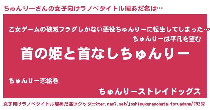 | 男性向けラノベタイトル風あだ名 | 『はたらくちゅんりーさま!』 |