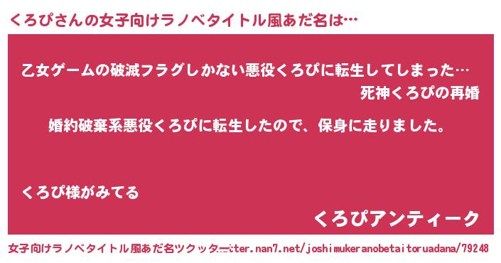 | 男性向けラノベタイトル風あだ名 | 『転生したらくろぴだった件』 |