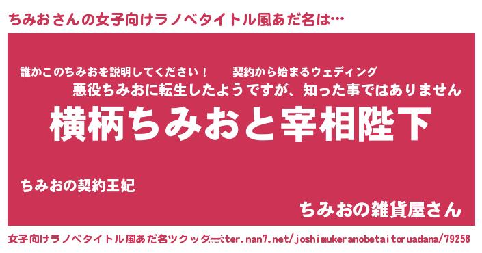 | 胡散臭い通販商品みたいなあだ名 | 『億万長者になれるブレスレット…その名も「ちみお」』 |