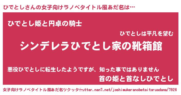 | 男性向けラノベタイトル風あだ名 | 『冴えないひでとしの育てかた』 |