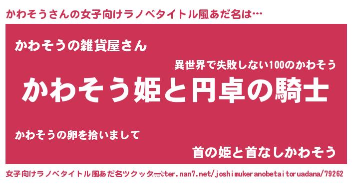 | 胡散臭い通販商品みたいなあだ名 | 『モテモテ間違いなしブレスレット…その名も「かわそう」』 |