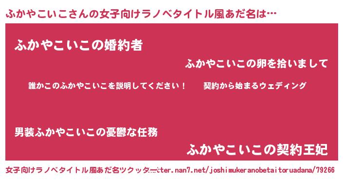 | 男性向けラノベタイトル風あだ名 | 『フカヤコイコアートオンライン』 |