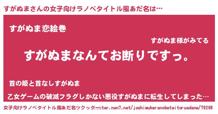 | 意味不明あだ名 | 『自称すがぬま』『しいたけ科すがぬま属』 |