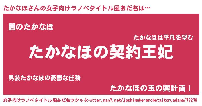 | 男性向けラノベタイトル風あだ名 | 『たかなほという概念が存在しない退屈な世界 』 |