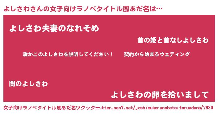 | ピコ太郎風あだ名 | 『ヨコ五郎』『ヨヨ太郎』『ヨシ六郎』 |