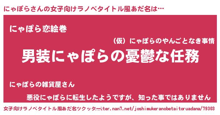 | 男性向けラノベタイトル風あだ名 | 『冴えないにゃぽらの育てかた』 |