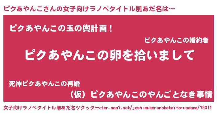 | 男性向けラノベタイトル風あだ名 | 『ダンジョンにピクあやんこを求めるのは間違っているだろうか』 |