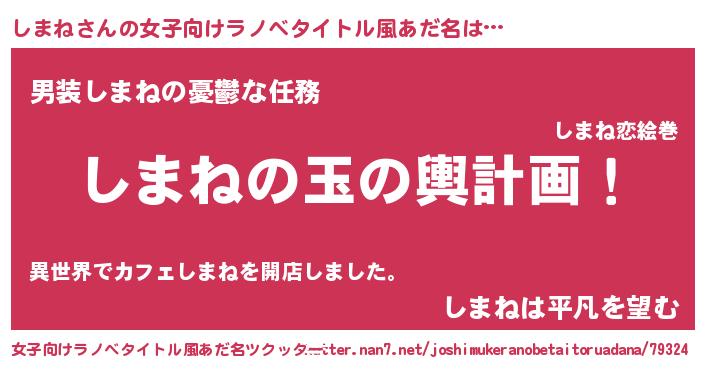 | ヒーロー風カッコイイあだ名 | 『幻影騎士シマ』『天空の使者しまね』 |