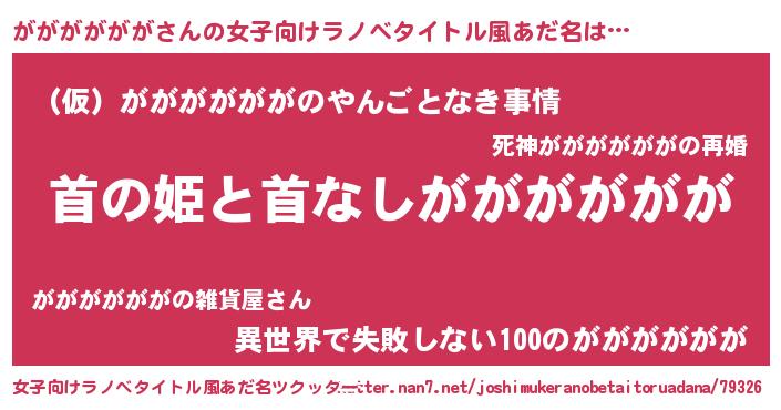 | 胡散臭い通販商品みたいなあだ名 | 『必ず成功するブレスレット…その名も「がががががが」』 |