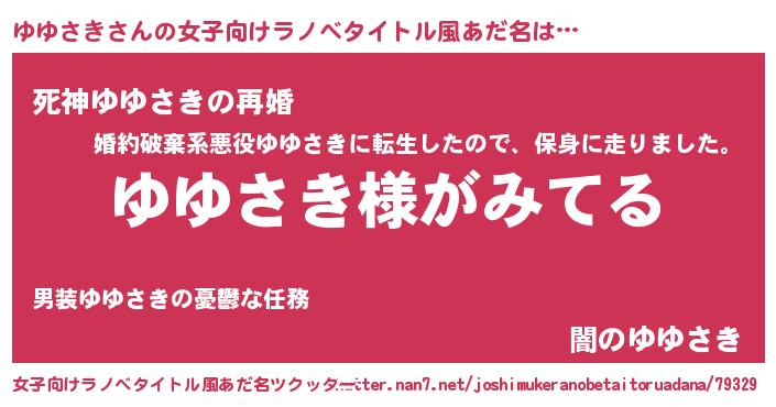 | 男性向けラノベタイトル風あだ名 | 『ゆゆさきの嫁は女の子じゃないと思った?』 |