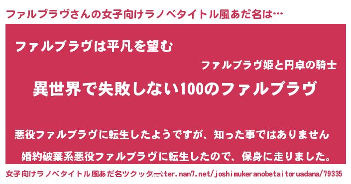 | 男性向けラノベタイトル風あだ名 | 『ファルブラヴという概念が存在しない退屈な世界 』 |