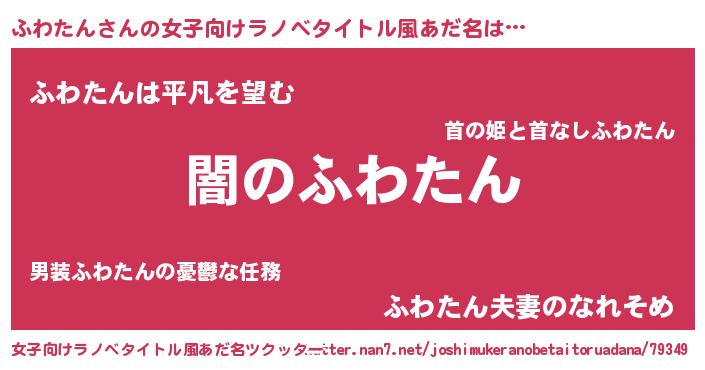 | 男性向けラノベタイトル風あだ名 | 『Re:ふわたんから始める異世界生活』 |