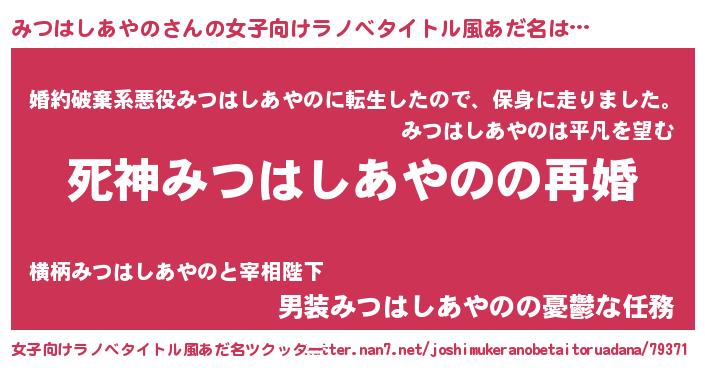| 男性向けラノベタイトル風あだ名 | 『ノーゲーム・ノーミツハシアヤノ』 |