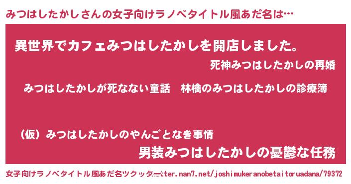 | 男性向けラノベタイトル風あだ名 | 『魔弾の王とみつはしたかし』 |