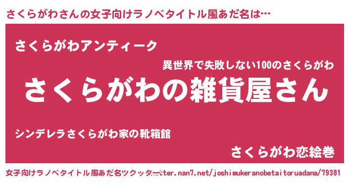 | 男性向けラノベタイトル風あだ名 | 『やはりさくらがわの青春ラブコメはまちがっている 』 |