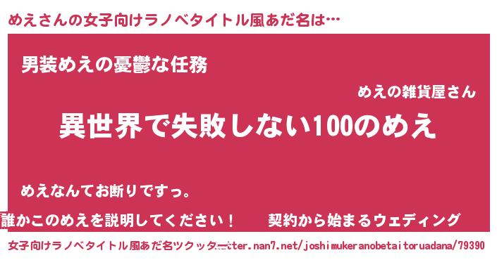 | 胡散臭い通販商品みたいなあだ名 | 『絶対に幸福をもたらす健康食品…その名も「めえ」』 |
