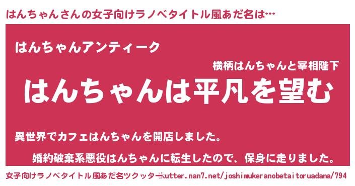 | ヘコむあだ名 | 『はんっ子』『はんちゃん(笑)』 |