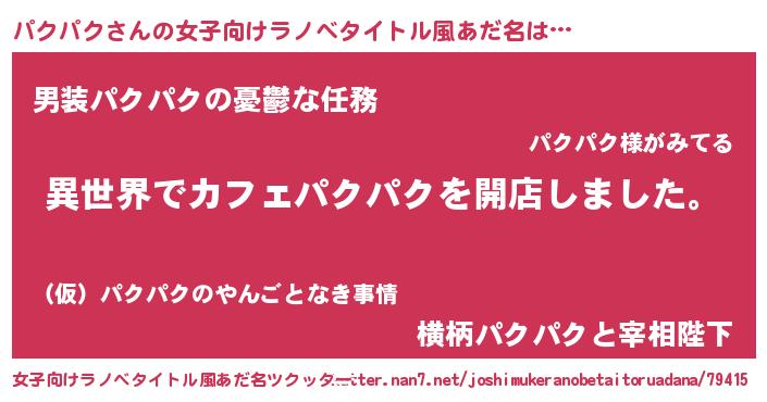 | 男性向けラノベタイトル風あだ名 | 『誰もが恐れるあのパクパクが、ぼくの専属メイドになるようです。』 |