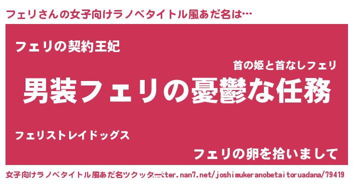 | 意味不明あだ名 | 『永久保存フェリ』『自称フェリ』 |