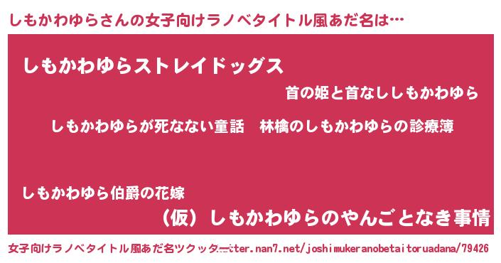 | 意味不明あだ名 | 『住所不定無職しもかわゆら(41歳)』 |