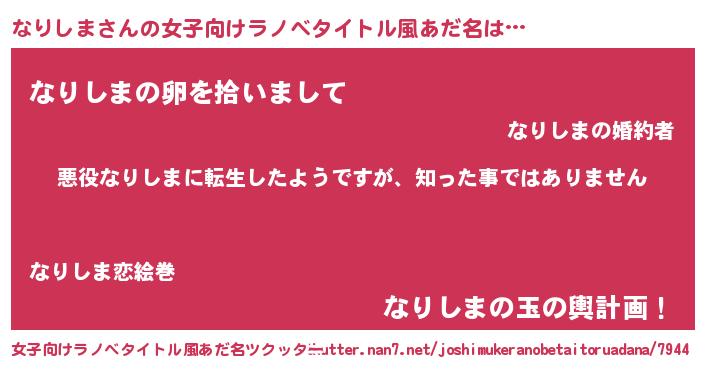 | 男性向けラノベタイトル風あだ名 | 『この素晴らしい世界になりしまを!』 |