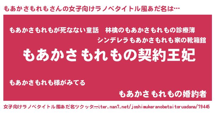 | 胡散臭い通販商品みたいなあだ名 | 『来世でも幸せになれる水素水…その名も「もあかさもれも」』 |