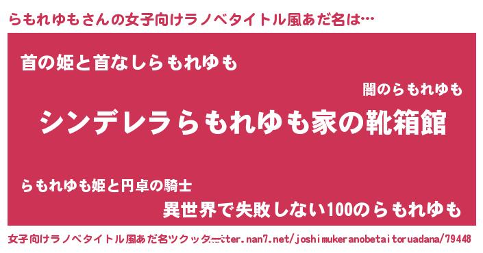 | 胡散臭い通販商品みたいなあだ名 | 『絶対に幸福をもたらす健康食品…その名も「らもれゆも」』 |
