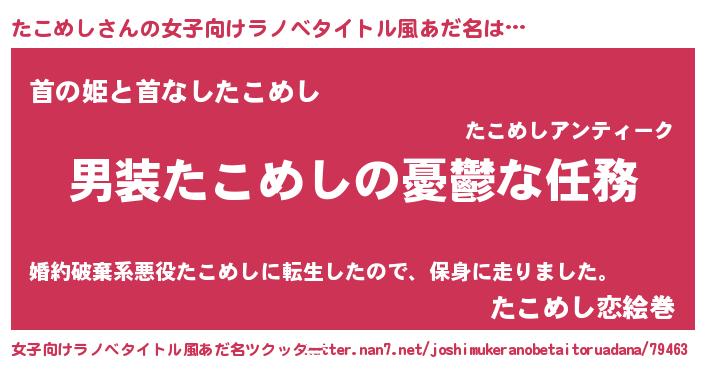 | 意味不明あだ名 | 『眠気覚ましガムたこめし味』 |